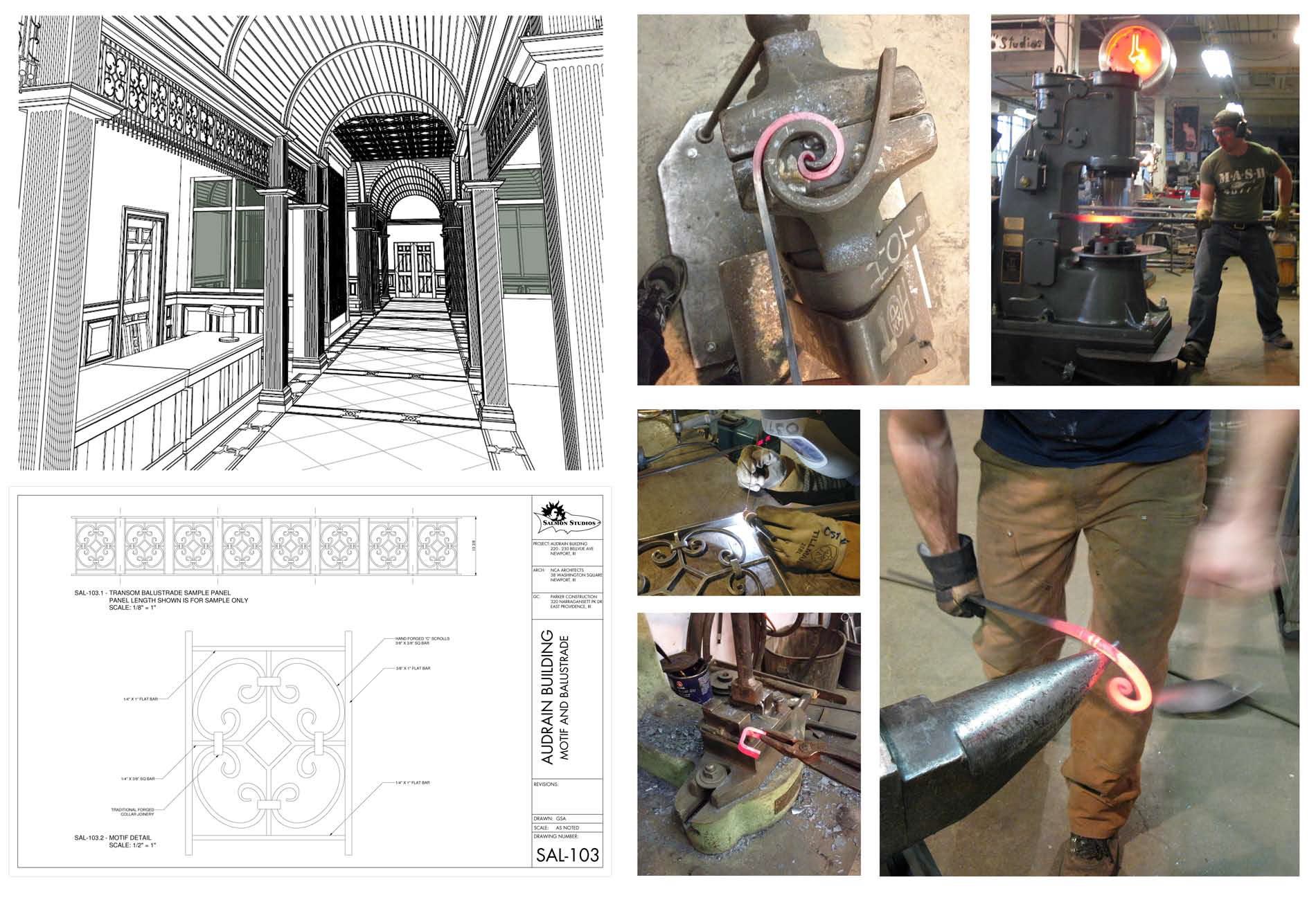 Working from conceptual renderings and precedent photos of existing turn-of-the-century elevators, the centerpiece combines hand forged and fabricated elements with precisely machined CNC components. The project was executed on a tight timeline, while ensuring all safety codes and safety requirements were met without compromising the historic look and feel.